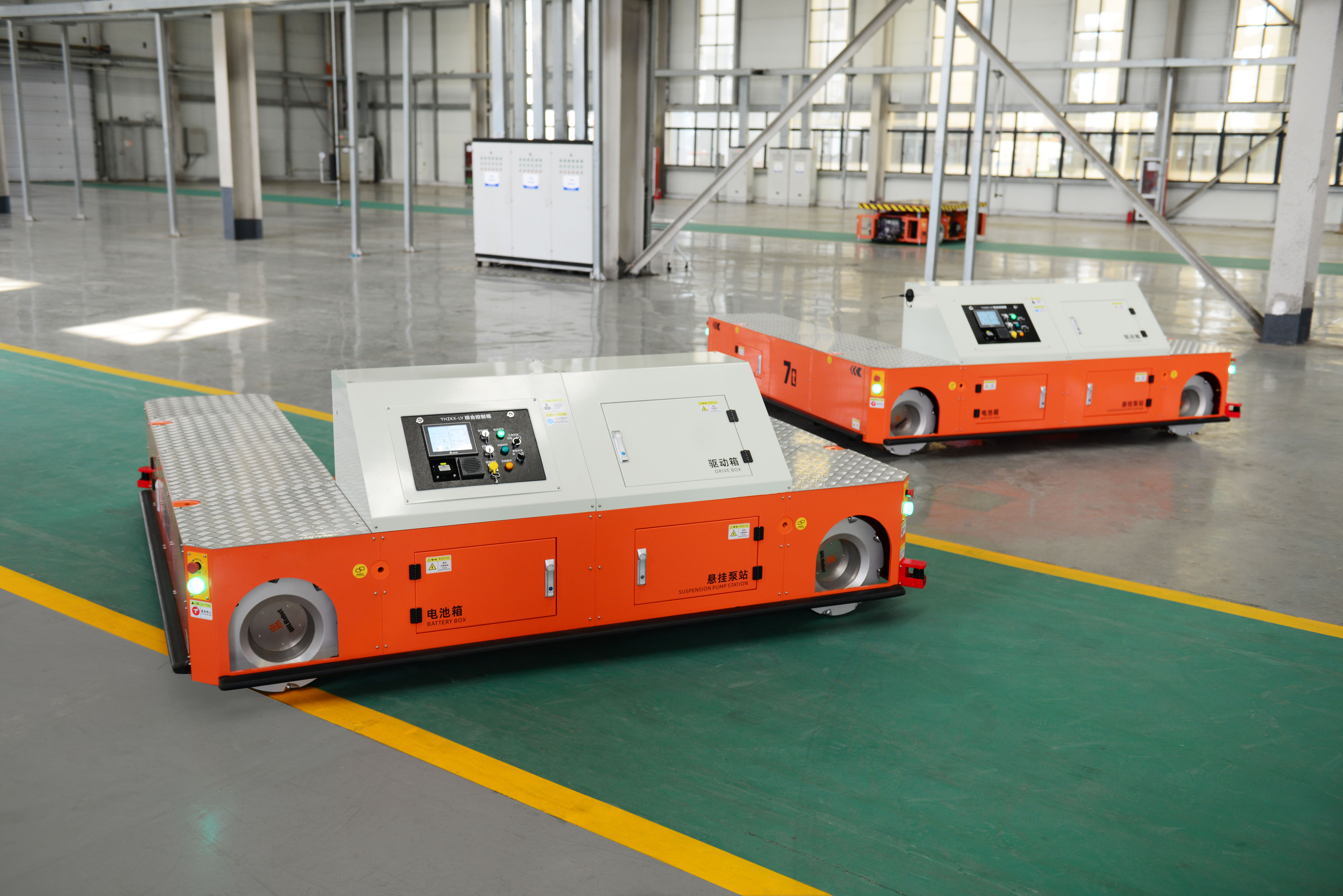 AGV采用麦克纳姆轮系,额定载荷7T,最大起升高度100mm;导航采用视觉识别,定位精度±5mm;直行、侧行、斜行、原地回转等行驶模式自由切换,无需转弯半径,产品具备极强的场景适应性,即使在狭小空间,也能轻松实现物料的长距离自动化高效转运;AGV上装支撑面依靠车体内的升降机构进行升降,最高可达100mm的举升能力,举升行程满足转运车的安全移动;整车加装有自动避障雷达及多个安全传感器设备,在监测到人员闯入或触碰到异物时AGV会立即停止运行;当遇到障碍物干扰时则主动规避障碍物,保障作业安全。设备动力方面搭载磷酸铁锂电池,有续航久、免维护、寿命长等优势,一次充满电可满负荷运行8h