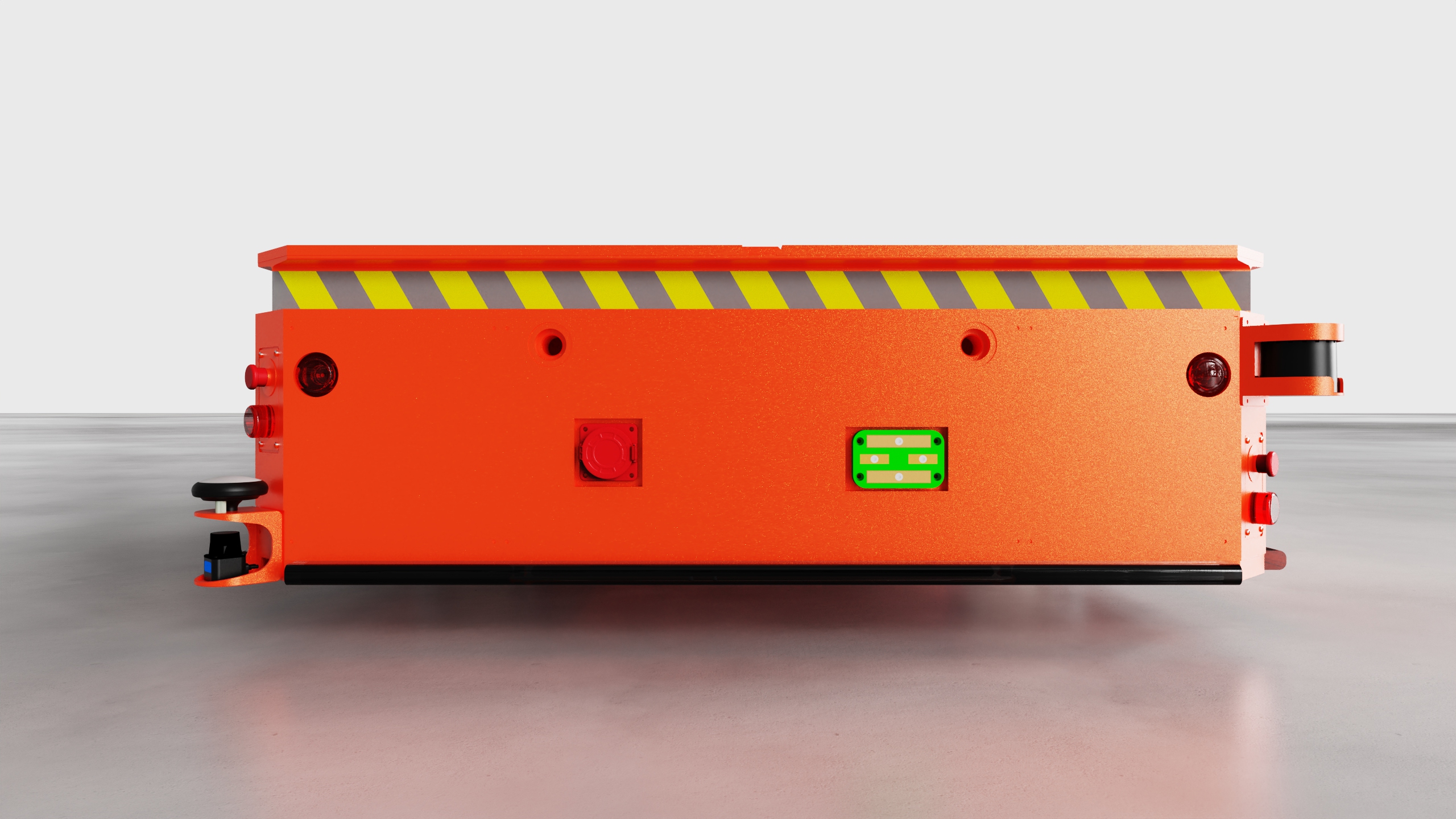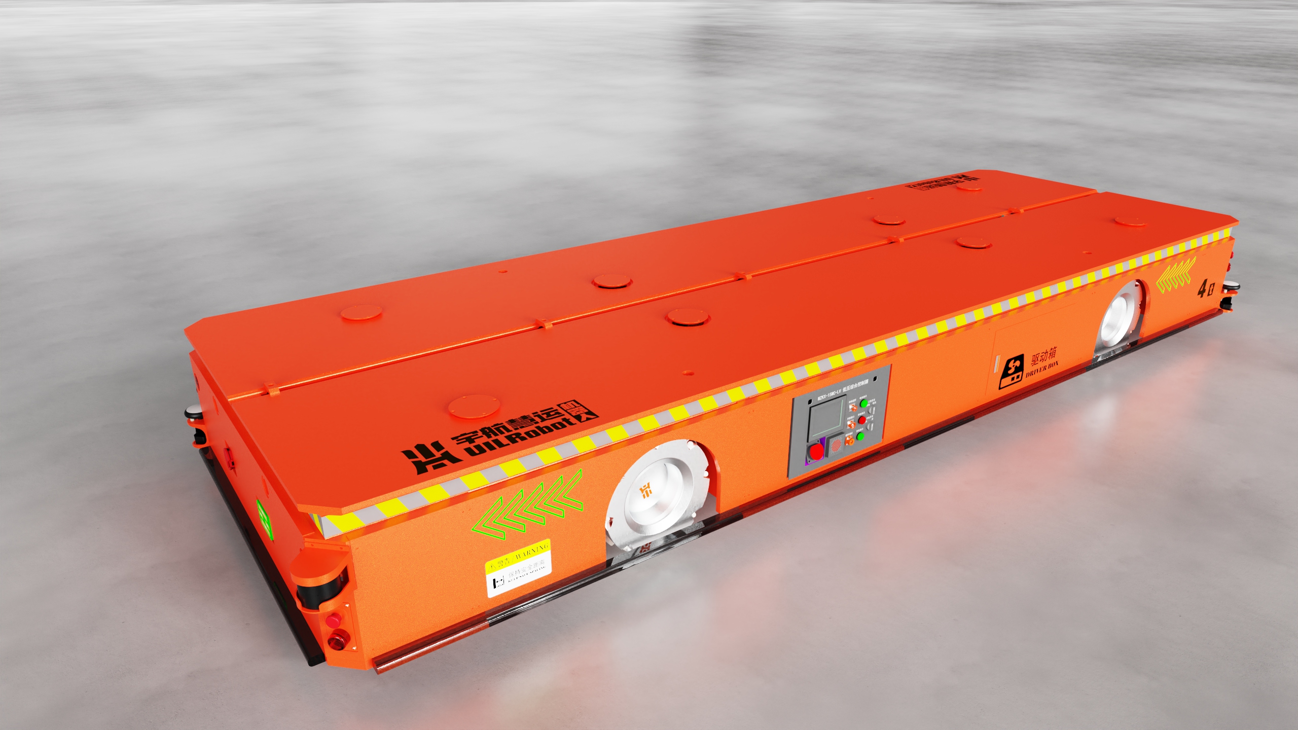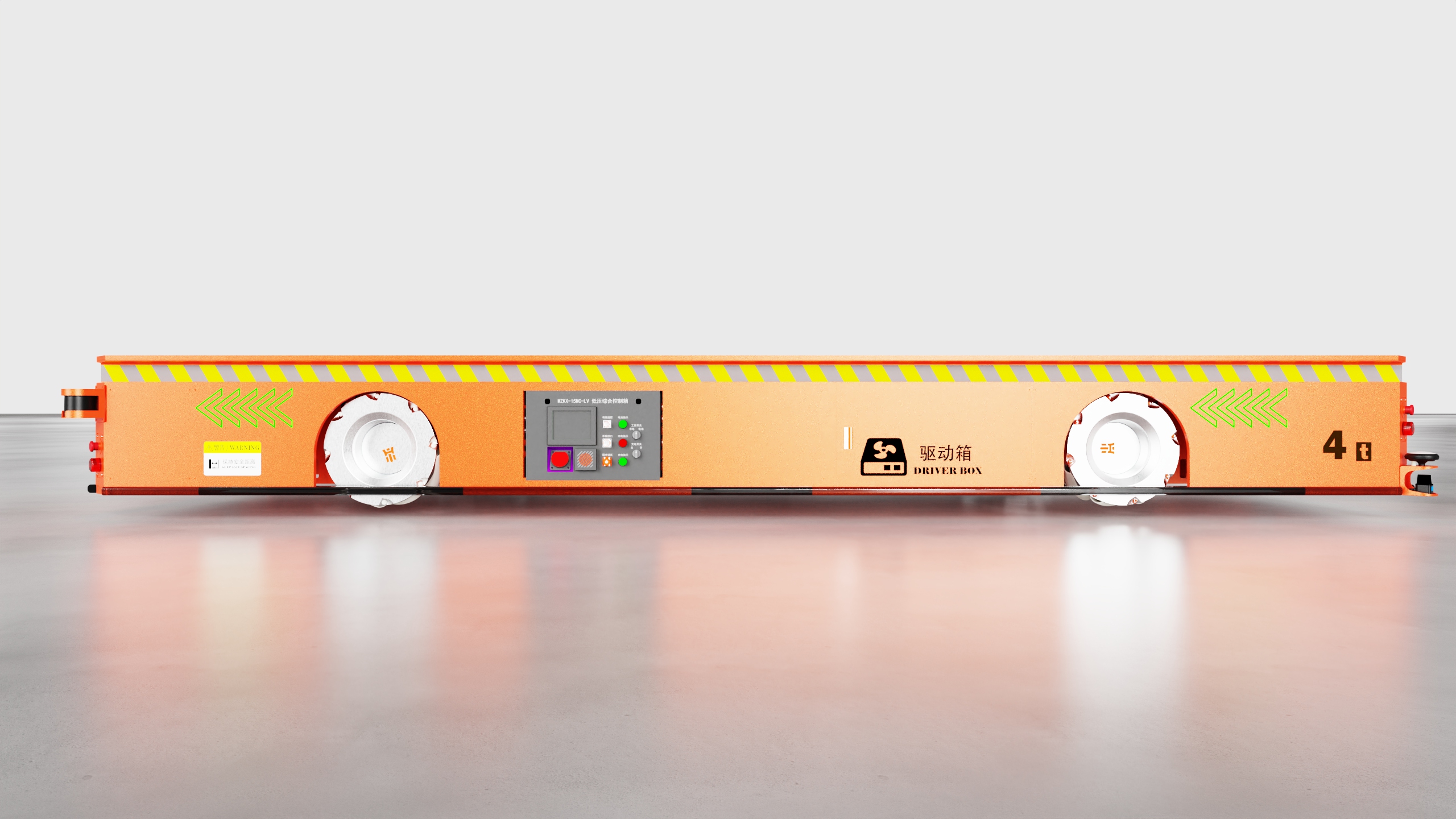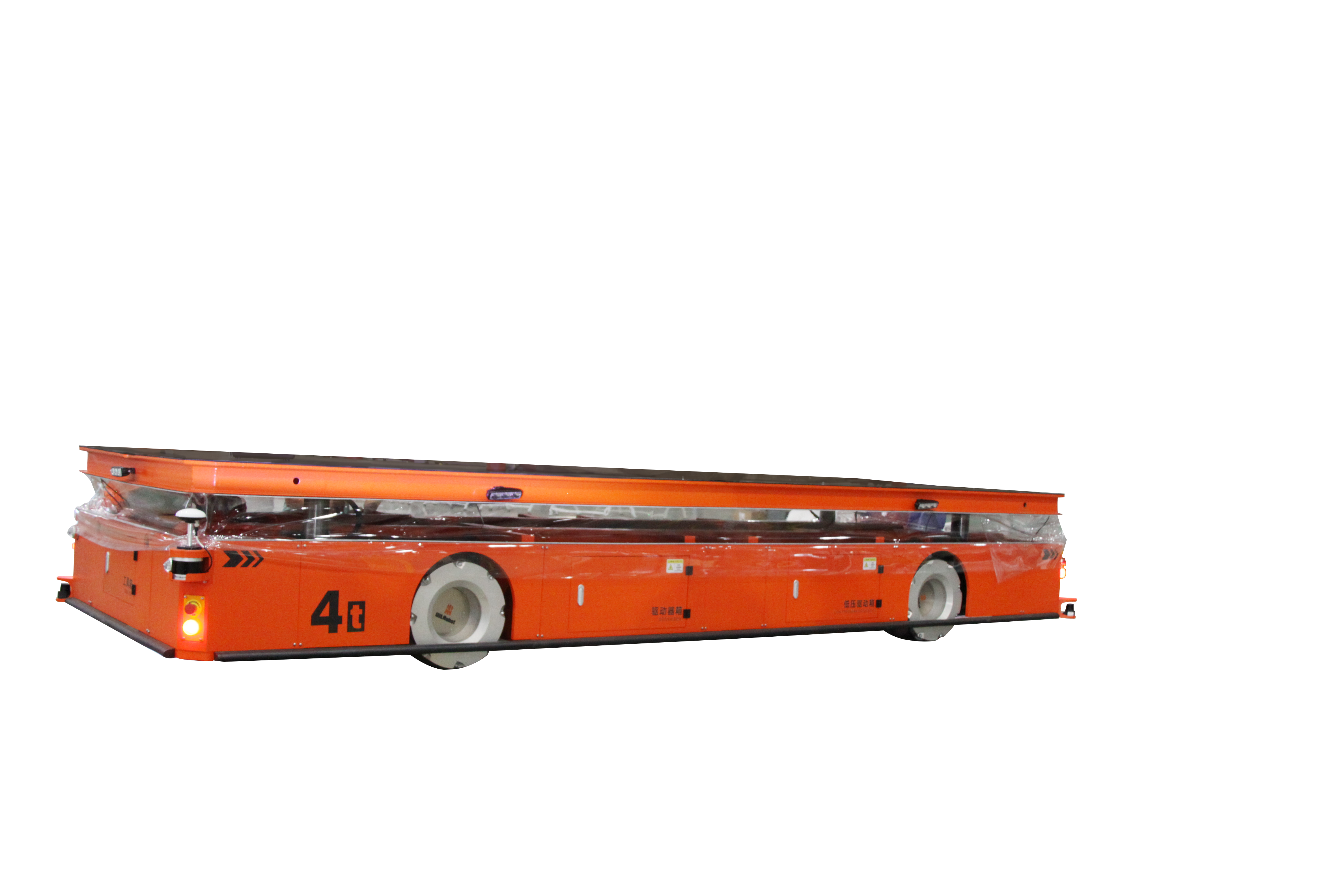 全向AGV采用麦克纳姆轮系,额定载荷4T,最大起升高度100mm;导航采用视觉识别,定位精度±5mm;直行、侧行、斜行、原地回转等行驶模式自由切换,无需转弯半径,产品具备极强的场景适应性,即使在狭小空间,也能轻松实现物料的长距离自动化高效转运;AGV上装支撑面依靠车体内的升降机构进行升降,最高可达100mm的举升能力,举升行程满足转运车的安全移动;整车加装有自动避障雷达及多个安全传感器设备,在监测到人员闯入或触碰到异物时AGV会立即停止运行;当遇到障碍物干扰时则主动规避障碍物,保障作业安全。设备动力方面搭载磷酸铁锂电池,有续航久、免维护、寿命长等优势,一次充满电可满负荷运行8h。